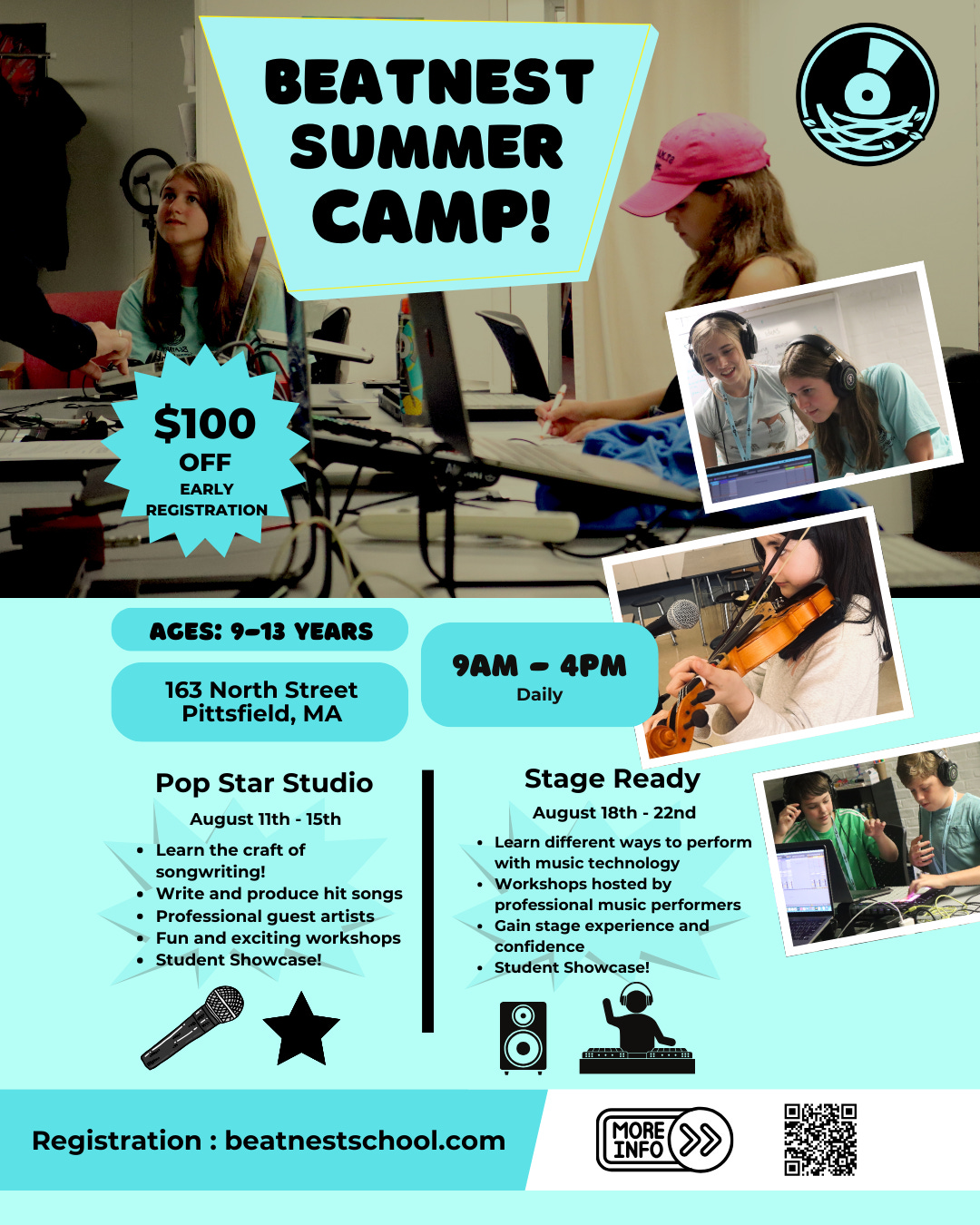 Summer is just around the corner, and so is the best deal on BeatNest’s Summer Music Camps! This Friday, March 14th, is the final day to lock in our early bird pricing. If you’ve been thinking about signing up, now’s the time! Whether your child is into beat-making, DJing, songwriting, or music production, we have an action-packed summer lined up with professional guest teachers, performance opportunities and more. Spots are filling up quickly so don’t miss out on this chance to fuel their creativity at the best price of the season!